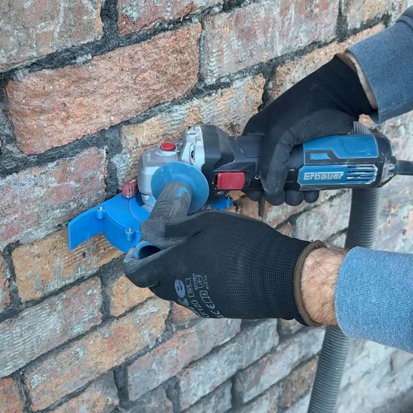 - I’ve only tested it on my 115mm Erbauer grinder from Screwfix, it clamps around the metal guard.